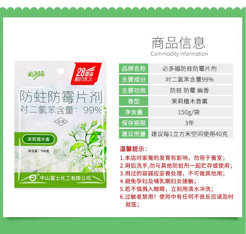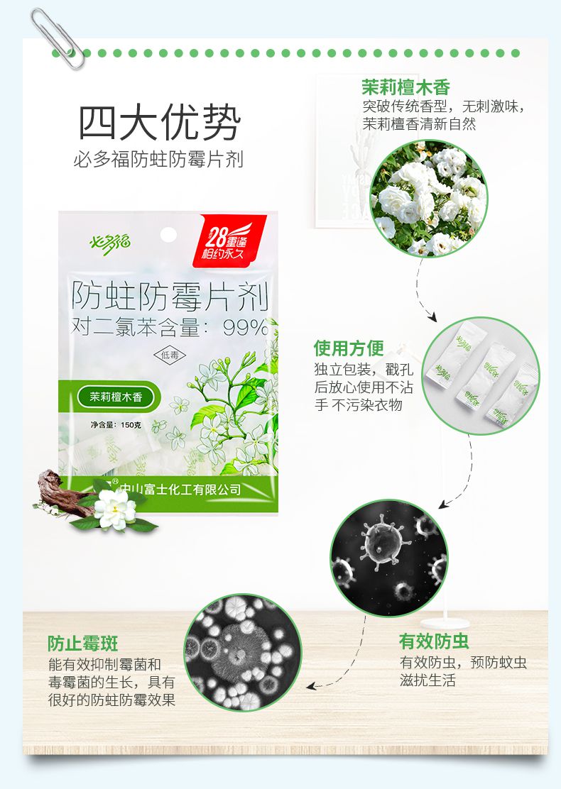 8007 防蛀防霉片劑 茉莉檀木香薰 小袋裝透氣片 150g